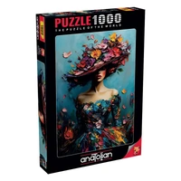 A woman in a wide hat blooms with vibrant flowers and textured brushstrokes in this captivating 1000-piece jigsaw puzzle. Rich colours and intricate details unfold beautifully. A premium puzzle delivering powerful visual impact and elegant artistic grace.