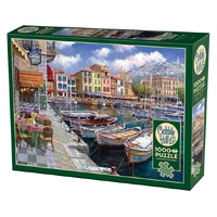 Cafe in Cassis is a vibrant scene that captures the picturesque harbor, where colorful buildings line the waterfront, each brimming with character and inviting you to explore their stories. Against the backdrop of majestic snow-capped mountains, the 1000 piece puzzle reveals a serene vista of tranquil green and blue waters, perfect for a peaceful afternoon escape.