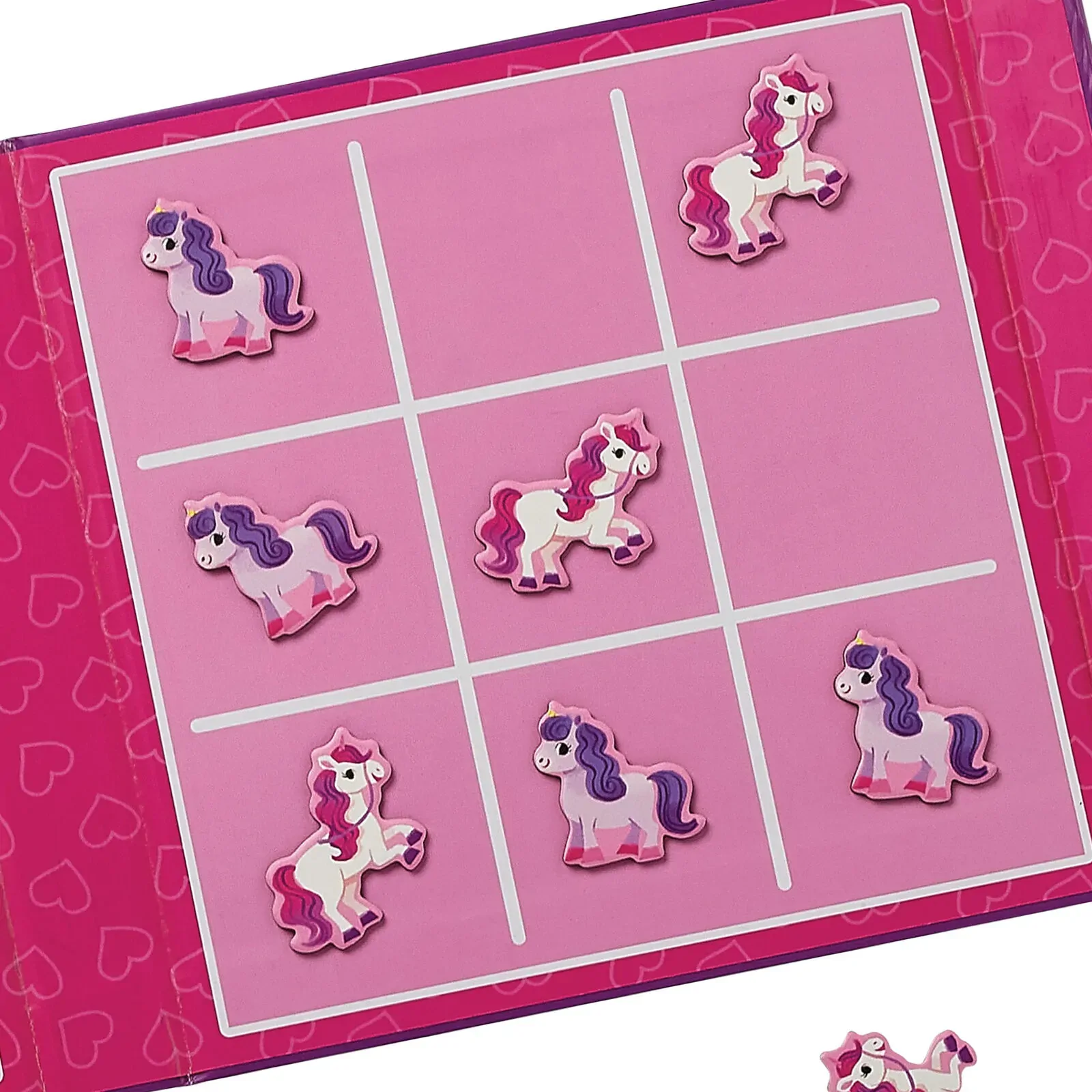 Perfect for travel this fold-up magnetic game is perfect for kids on the go. Includes everything needed for 2 classic games - Tic Tac Toe and Checkers with fun Unicorn design.