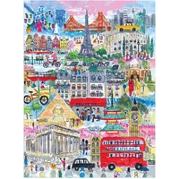 Embark on a captivating journey across the globe with Galison's stunning 1000-piece puzzle featuring the vibrant artwork of Michael Storrings showcasing cities around the world. Each piece of this puzzle is a window into the bustling streets, iconic landmarks, and diverse cultures of some of the world's most beloved destinations.