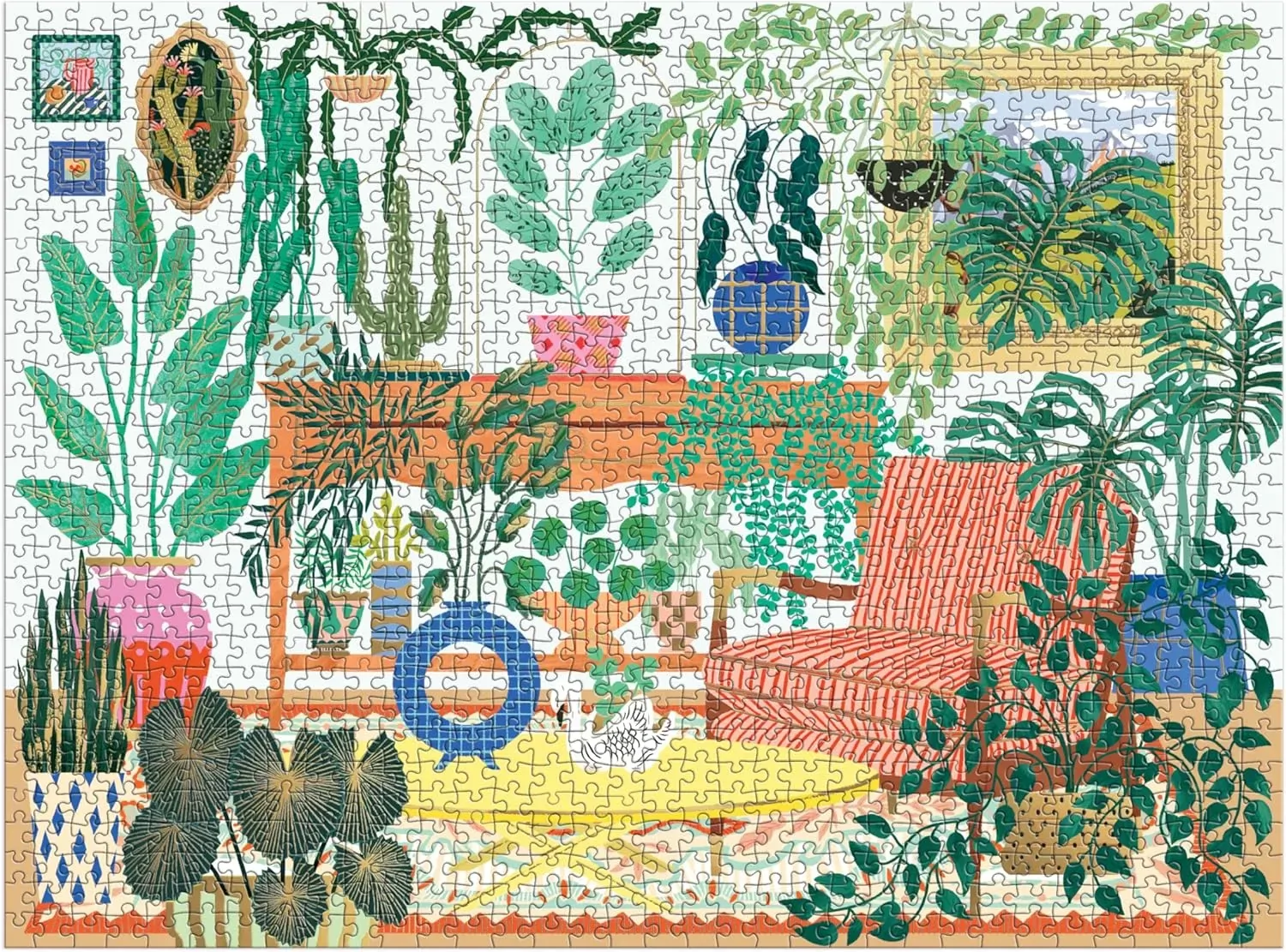 Immerse yourself in the lush tranquility of Houseplant Haven, a 1000 Piece Foil Puzzle from Galison that invites you into a beautifully styled living room overflowing with greenery. From trailing vines and leafy ferns to sculptural succulents and blooming potted plants, this serene indoor jungle is a celebration of botanical beauty and cozy interior design. As you assemble each piece, the peaceful, plant-filled scene slowly comes together, offering a moment of calm and creative satisfaction.