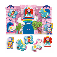 Contents: 6-piece shaped jigsaw puzzle; 5 wooden characters