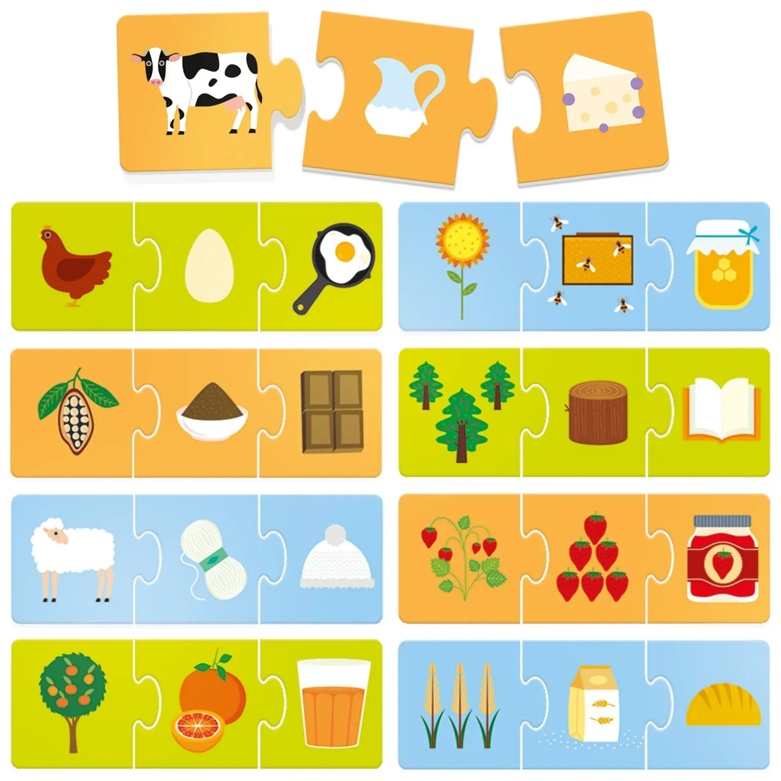 This engaging activity encourages naturalistic intelligence by helping little learners discover where everyday things come from - whether it's food, materials, or objects. With 9 three-piece puzzles, children will develop logical thinking and curiosity as they match each item to its source. This hands-on approach also strengthens logical-mathematical intelligence, making learning fun and interactive.