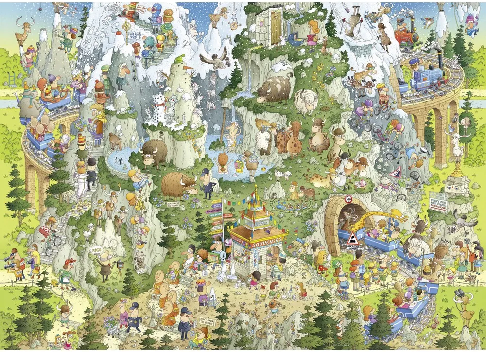 Cozy puzzles instead of icy mountain climbing: Marino Degano's Himalayan world contains all the distinctive local features with plenty of humor and without danger to life and limb!
