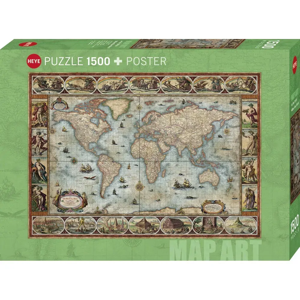Based on Willem Blaeu's cartographic masterpiece of 1630, this world map offers a variety of scenic illustrations surrounding the classic depiction of the Earth.