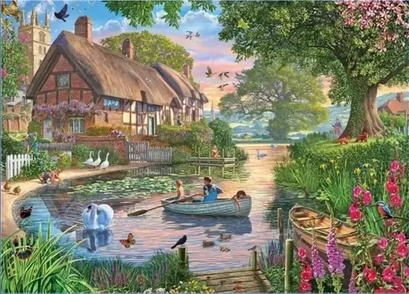 Holdson - Cobblestone Corner Cottage and Boats Puzzle 1000pc