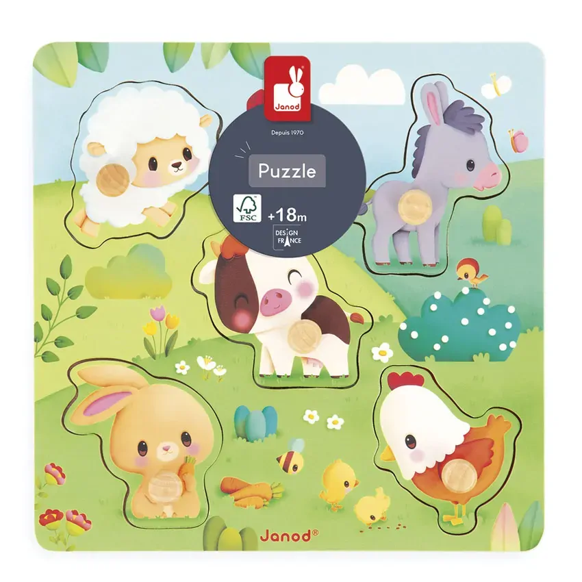 Janod - Tactile Farm Peg Puzzle 5pc