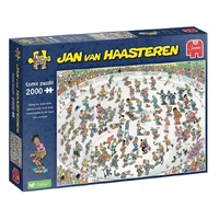 What action in this skate bowl! Truly everyone from the Jan van Haasteren family performs tricks and manoeuvres. Mother-in-law goes through the bowl at high speed and Jan also seems to have found his place in this chaos of skateboarders, BMX riders and other athletes. A Jan van Haasteren puzzle is so much more than just a puzzle, its an adventure series with familiar characters playing the lead roles in a never-ending decor full of absurd details. Discover the crazy adventures of the Jan van Haasteren family!
