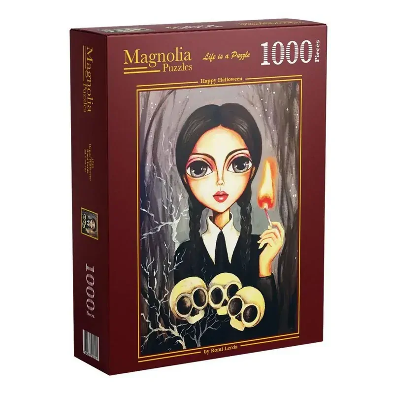 Romi Lerda puzzles are captivating and Happy Halloween 1000 piece puzzle is no exception. Following on as a series, every portrait tells a story.