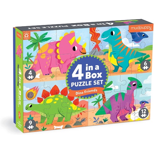 Mudpuppy - Dino Friends 4-in-a-Box Puzzle Set