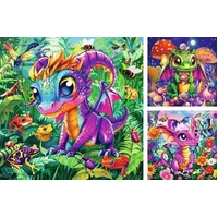 Step into a magical world with the Ravensburger Baby Garden Dragons 3 x 49-piece jigsaw puzzle set. Each of the three beautifully crafted puzzles showcases adorable, colourful baby dragons playing among flowers, mushrooms, and leafy greenery in a whimsical garden setting. Designed with Ravensburgers premium quality and perfect interlocking pieces, this set offers a delightful, imaginative challenge for young puzzlers or anyone who loves cute, enchanting creatures.