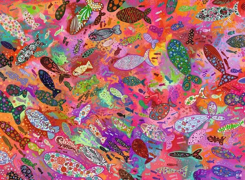 If youre feeling like a fish out of water, unwind with the Ravensburger Fish in Fuchsia 500-piece jigsaw puzzle by artist Noemi Ibarz. Each fish features a unique, colourful pattern that makes piece identification and placement a breeze, turning puzzling into a calming, mindful experience. Dive into a sea of pinks, purples, oranges, and more youll be hooked as you relax and keep saying, just one more piece!