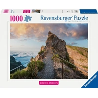 Experience the magic of nature with the Ravensburger 1000-piece jigsaw puzzle, Pathway to Heaven. Captured by photographer Marco Bottigelli, this breathtaking image transports you to a charming cobblestone stairway that winds its way skyward. Sturdy handrails guide your journey as rugged rocky outcrops frame the path, while soft clouds drift gently above. Piece by piece, youll recreate a serene and inspiring scene that invites you to slow down, reflect, and appreciate the timeless beauty of Madeiras heavenly walkways.