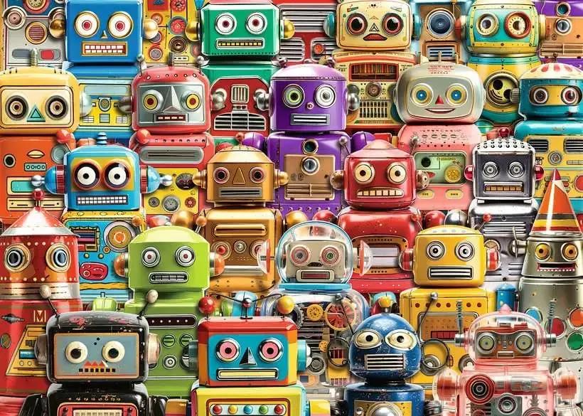 Engineer some relaxation time with our Retro Robots jigsaw puzzle and feel the tension of the day fade away with each piece you click into place!
